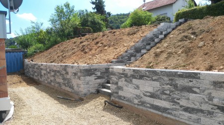 Mauer, Gabionen, L-Steine, Abrissarbeiten